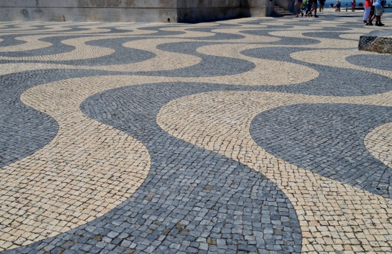 The Monument to the Discoveries built in 1960 is surrounded by a tiled floor, forming an interesting optical illusion, either flat or going up and down, depending which way you look at it.