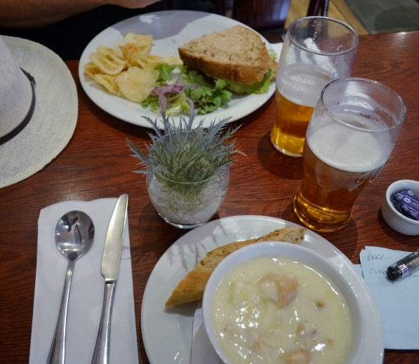 Keen to try something local, lunch consisted of a ploughman’s lunch for Alex and I had a great-tasting soup, called Cullen Skink, consisting of fish and potatoes and a pint of Killelan beer.