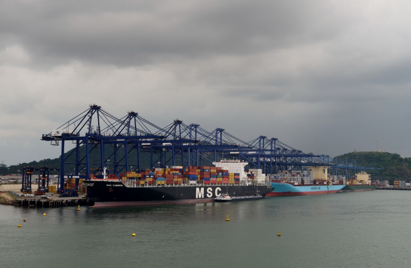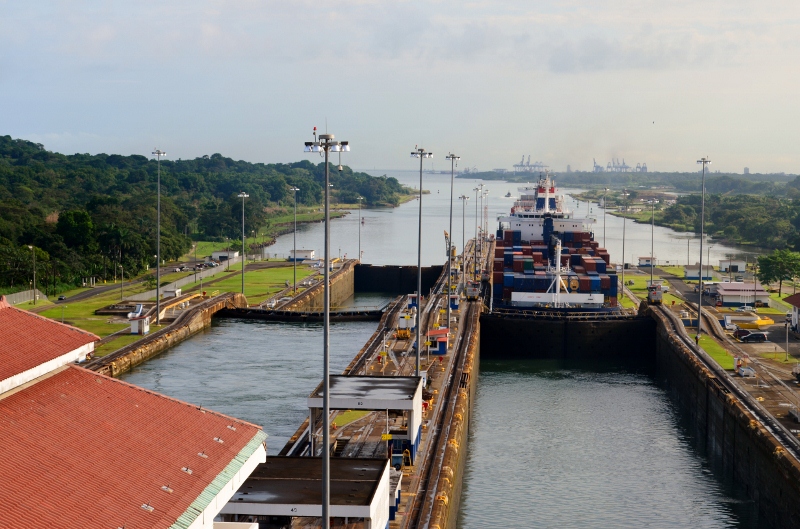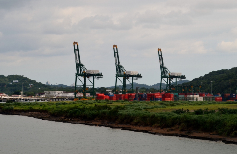 There is a huge container port near the Bridge of the Americas where container ships are loaded from the train which runs parallel to the canal. Some of these ships are too heavy to pass through and there is the cost to consider as well, so many of the ships unload their containers onto the train and collect them at the end.