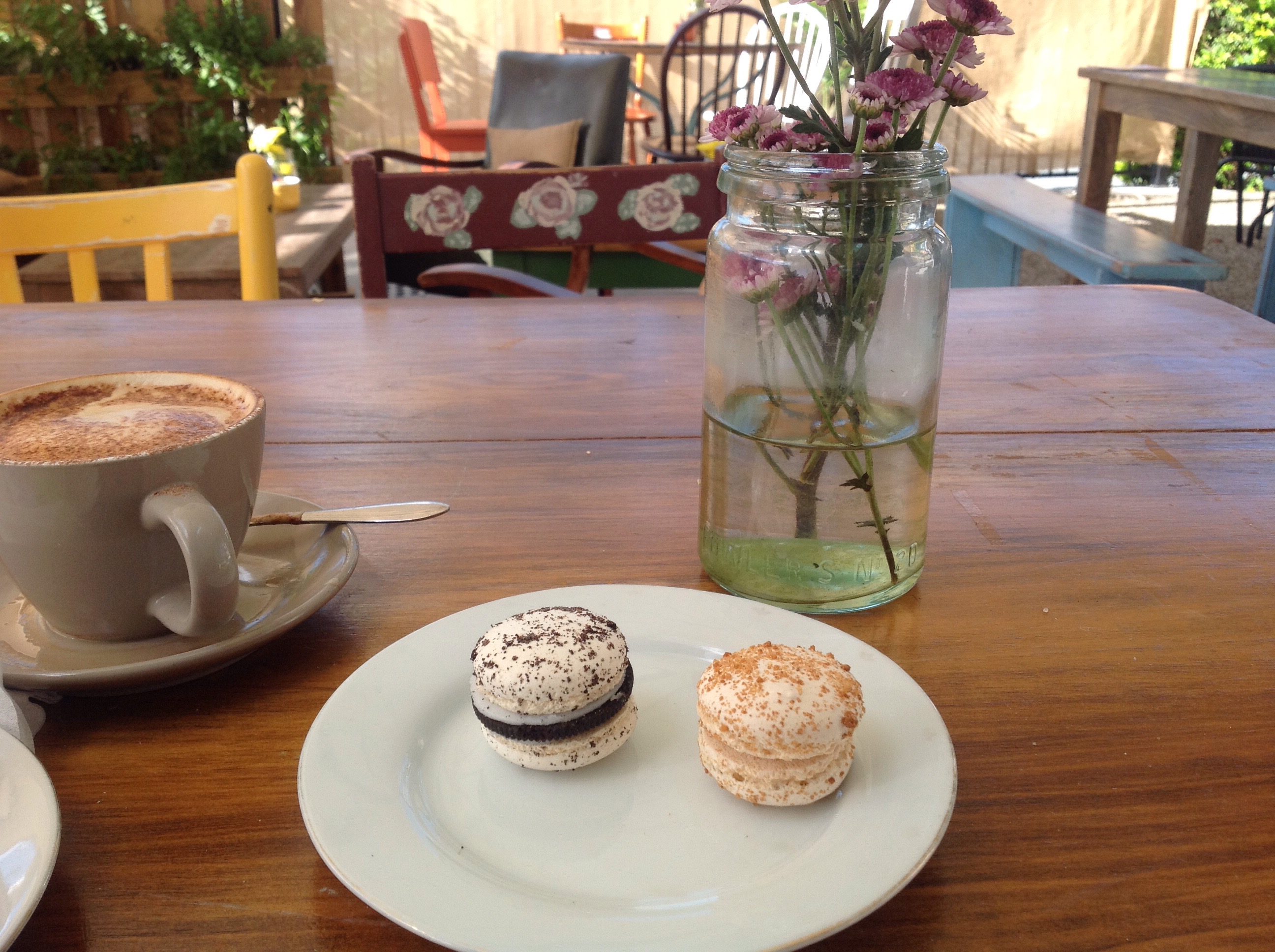 Yesterday, I was absolutely amazed to find a lovely little cafe, Whiskey Business, selling one of my favourite sweet things- macarons – in the suburb where I use to live. This is amazing for two reasons 1) that it was open for 3 months before I moved and I had missed it and 2) my suburb is definitely not what you would call “trendy” so I did not expect to find a cafe full of charming vintage pieces, pretty plants and more importantly, a very impressive display of macarons. I was instantly tempted to eat my way through the showcase there and then!