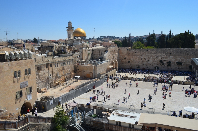 The next stop was to the Western or Wailing Wall, the only remaining piece of Jerusalem’s Second Temple. This is the most holy Jewish site in the world, where people come to place their written prayers within the cracks between its massive stones. Men and women were segregated once again. (We have since heard that there was an incident there the day after our visit where someone was shot and killed but no other details.)