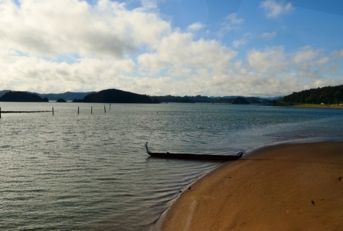 Bay of Islands is a tender port, so we were a bit worried that either the wind might pick up or the sea become rough, which would mean not stopping there. Luckily, we need not have been concerned, as we awoke to a nice fine day and it was not long before we dropped anchor and the ship’s tender boat transferred us to Waitangi Wharf.